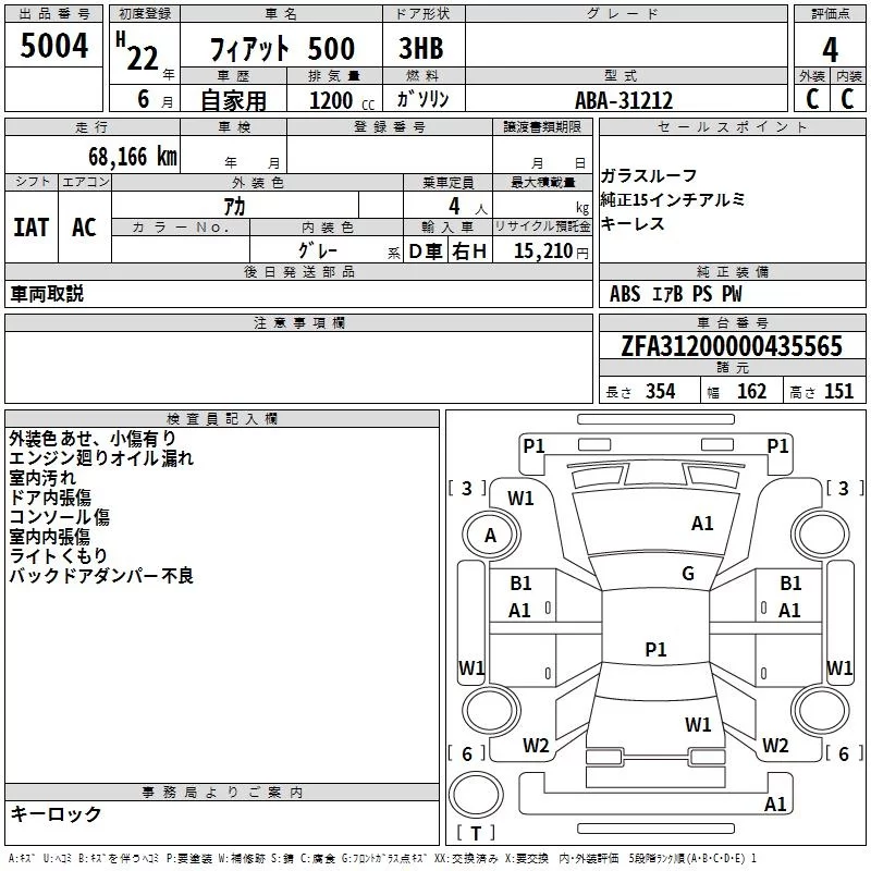 Fiat 500 с аукциона Японии TAA Hiroshima лот № 5004