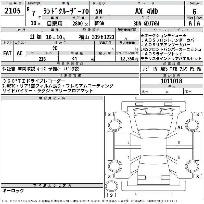 Toyota LAND CRUISER с аукциона Японии TAA Hiroshima лот № 2105