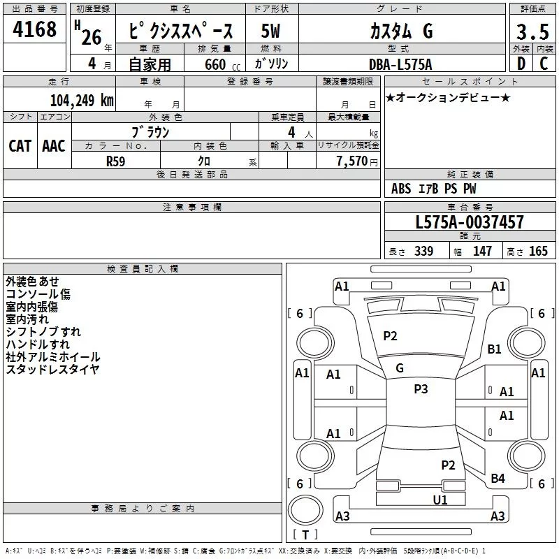 Toyota PIXIS SPACE с аукциона Японии TAA Hiroshima лот № 4168