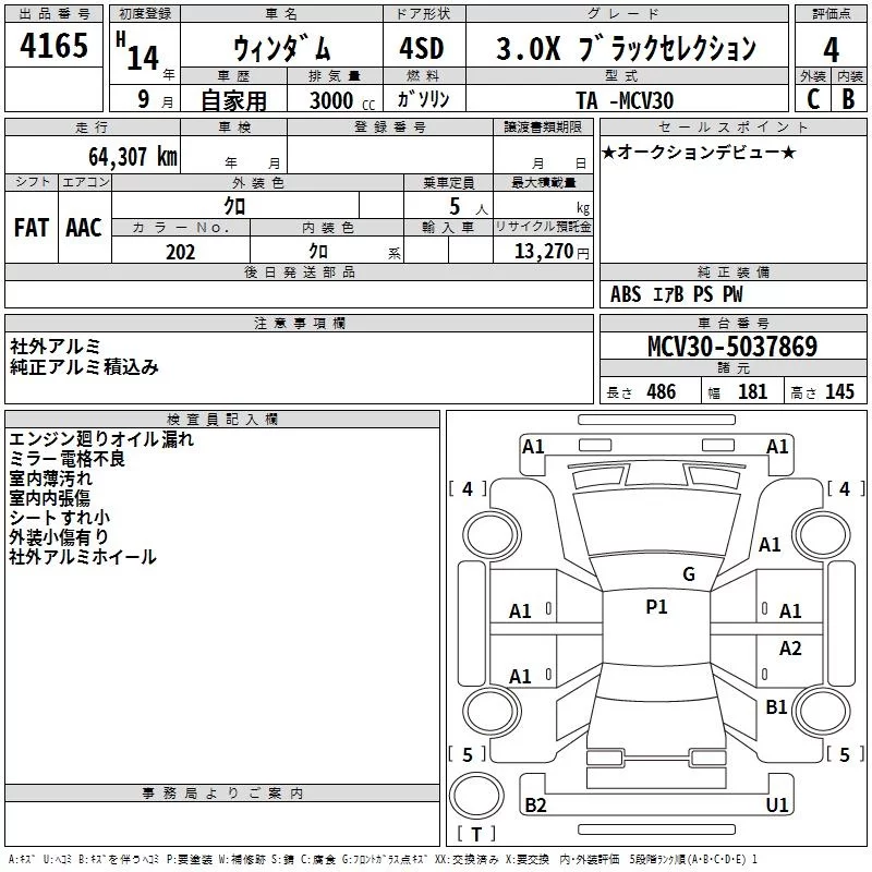 Toyota WINDOM с аукциона Японии TAA Hiroshima лот № 4165