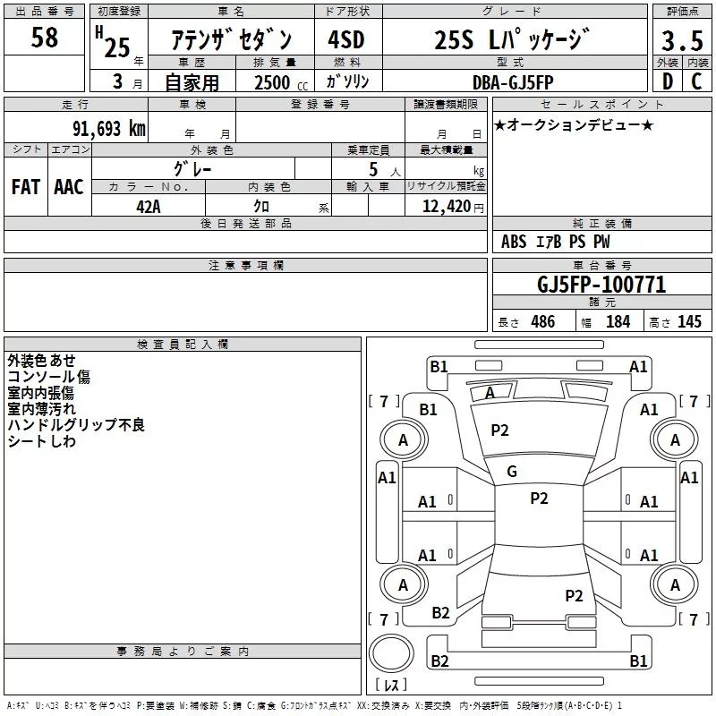 Mazda ATENZA SEDAN с аукциона Японии TAA Hiroshima лот № 58