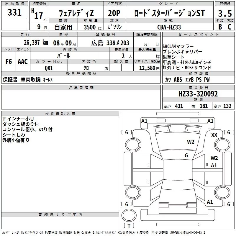 Nissan FAIRLADYZ с аукциона Японии TAA Hiroshima лот № 331