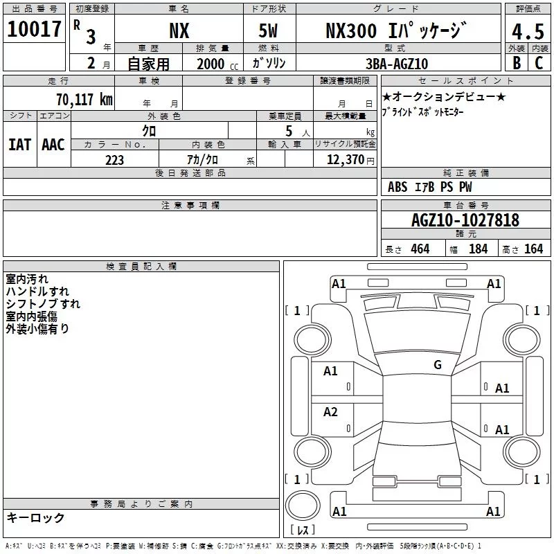 Lexus NX с аукциона Японии TAA Hiroshima лот № 10017
