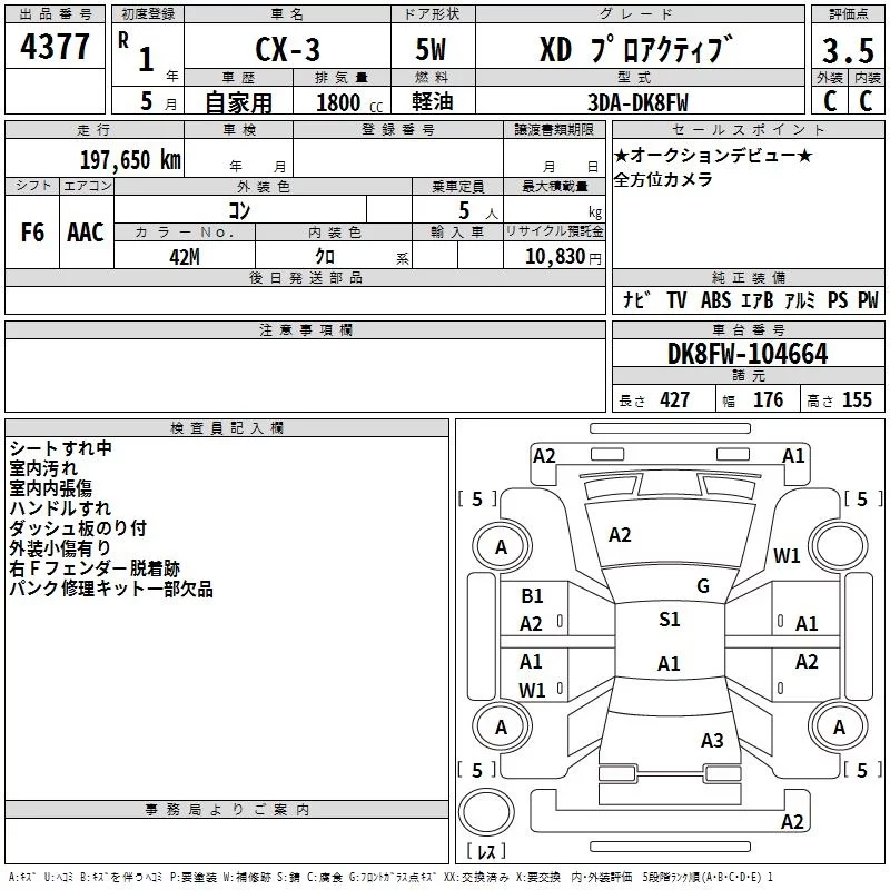 Mazda CX-3 с аукциона Японии TAA Hiroshima лот № 4377