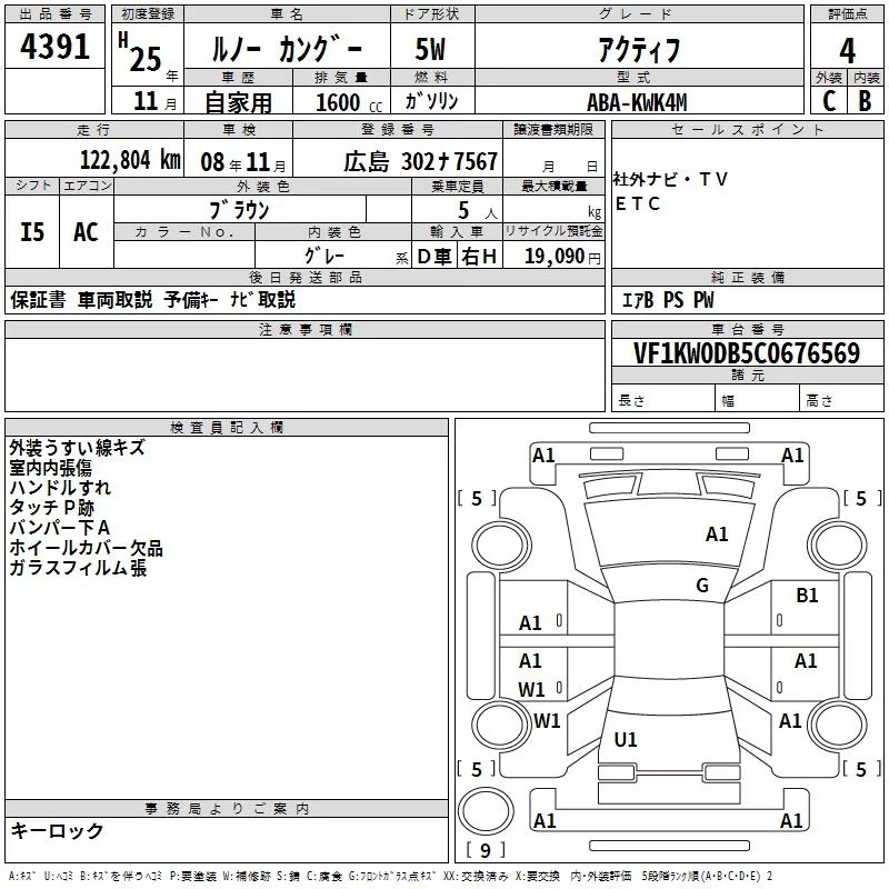 Renault KANGOO с аукциона Японии TAA Hiroshima лот № 4391