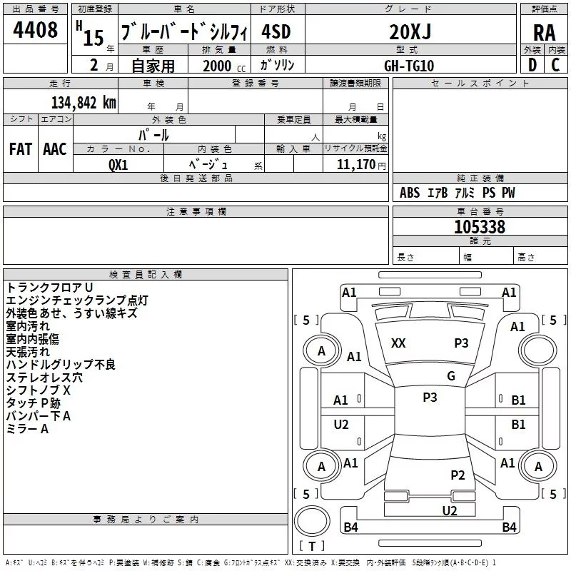 Nissan SYLPHY с аукциона Японии TAA Hiroshima лот № 4408