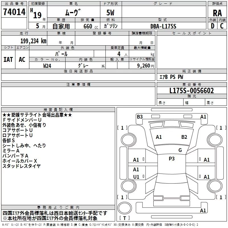 Daihatsu MOVE с аукциона Японии TAA Shikoku лот № 74014