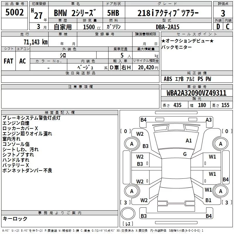 BMW 2-Series с аукциона Японии TAA Shikoku лот № 5002