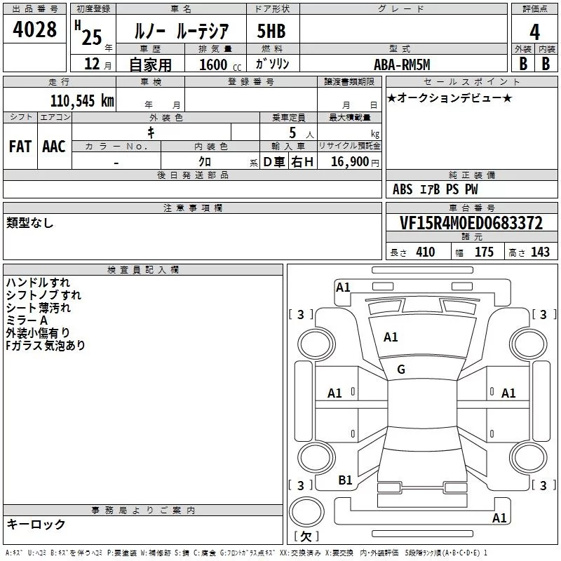 Renault LUTECIA с аукциона Японии TAA Shikoku лот № 4028