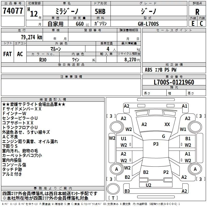Daihatsu MIRA с аукциона Японии TAA Shikoku лот № 74077