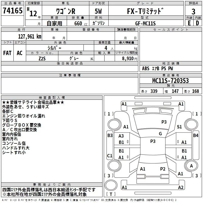 Suzuki WAGON R с аукциона Японии TAA Shikoku лот № 74165