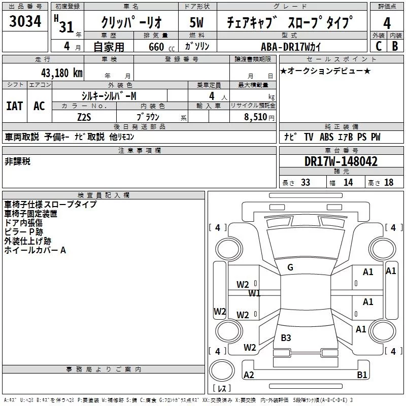 Nissan CLIPPER RIO с аукциона Японии TAA Shikoku лот № 3034