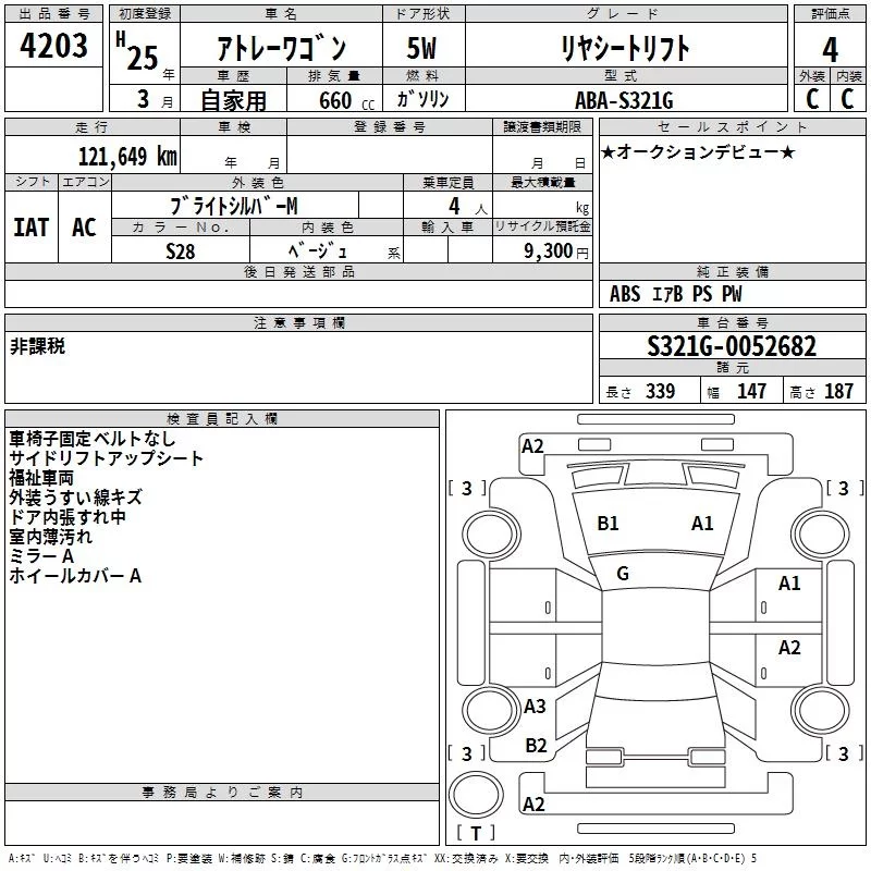Daihatsu Atrai Wagon с аукциона Японии TAA Shikoku лот № 4203