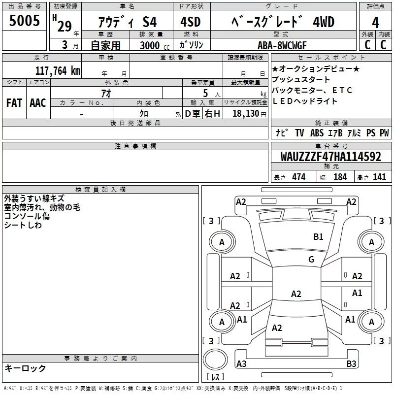 Audi S4 с аукциона Японии TAA Shikoku лот № 5005
