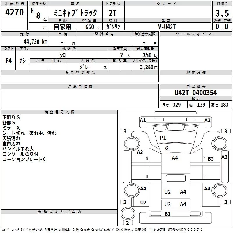Mitsubishi MINICAB TRUCK с аукциона Японии TAA Shikoku лот № 4270