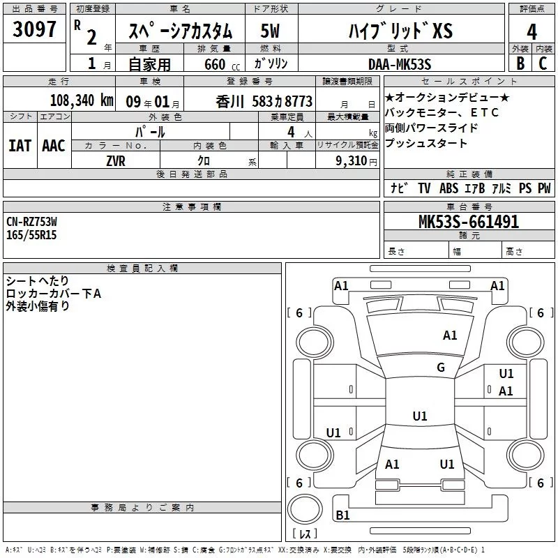 Suzuki SPACIA с аукциона Японии TAA Shikoku лот № 3097