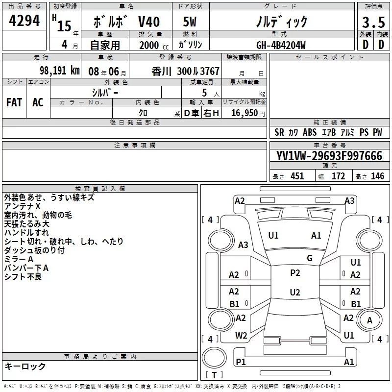 Volvo V40 с аукциона Японии TAA Shikoku лот № 4294