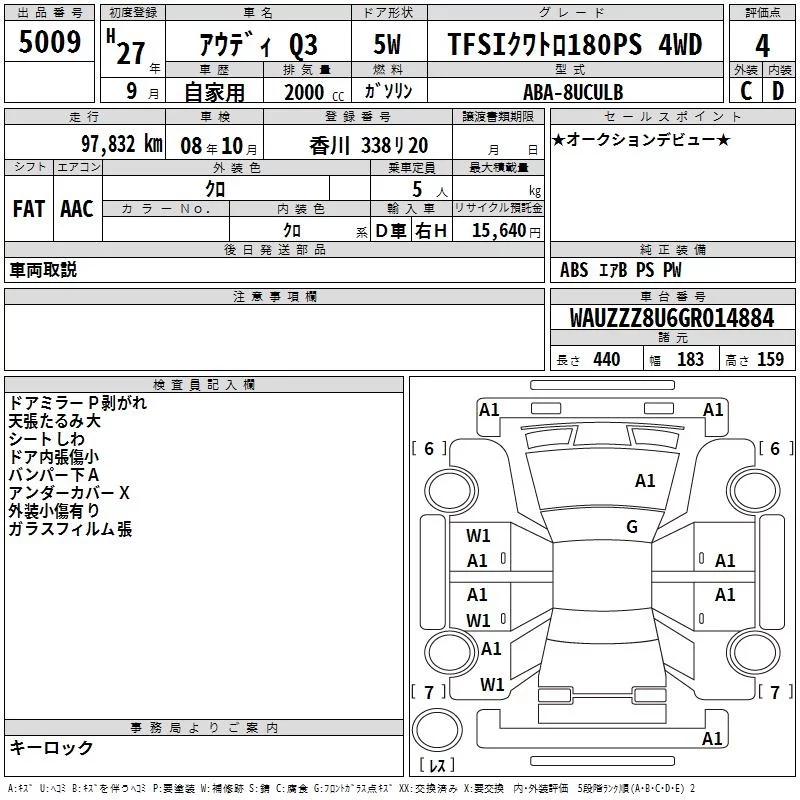 Audi Q3 с аукциона Японии TAA Shikoku лот № 5009