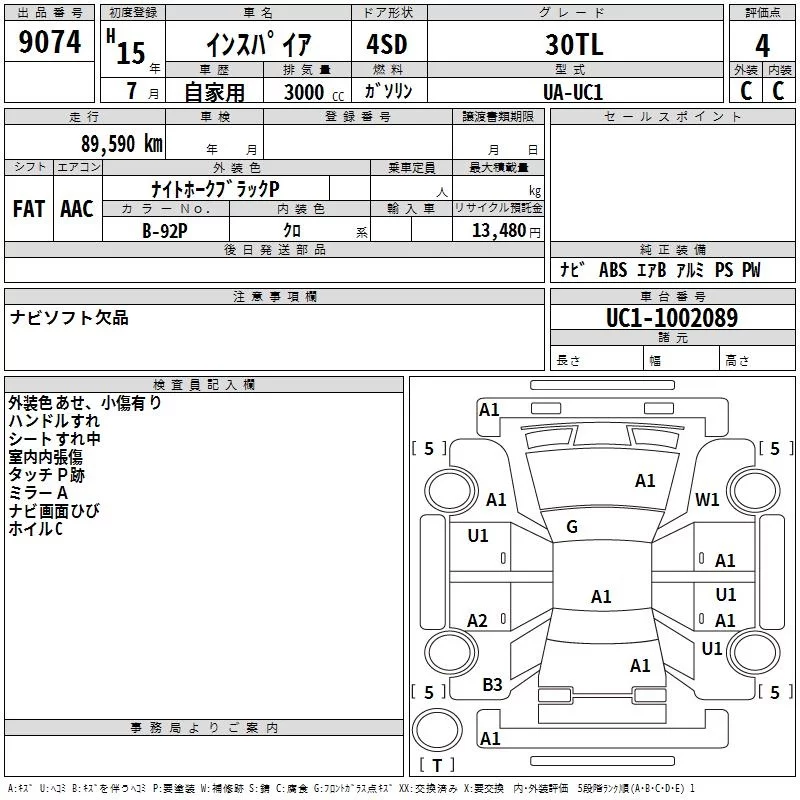 Honda INSPIRE с аукциона Японии TAA Shikoku лот № 9074