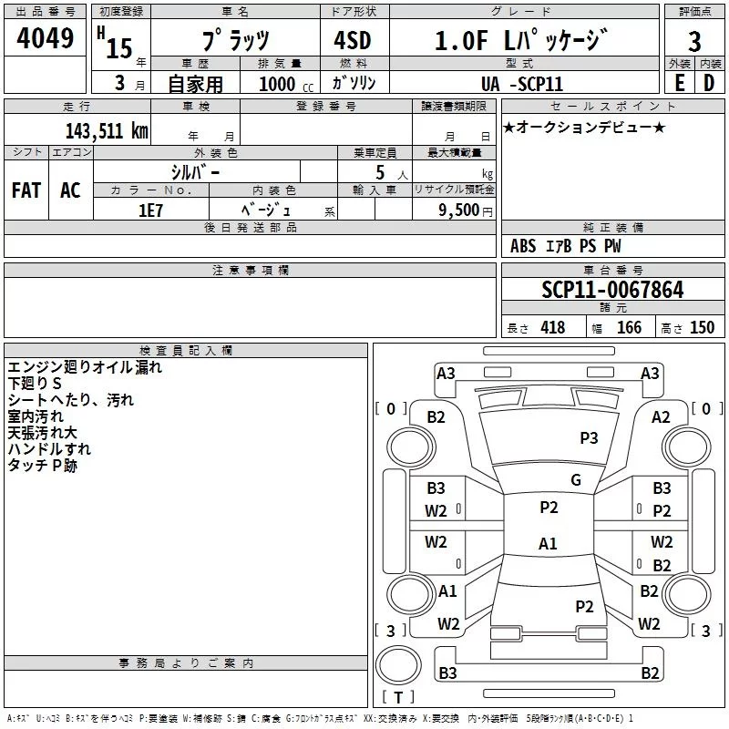 Toyota PLATZ с аукциона Японии TAA Minami Kyushu лот № 4049