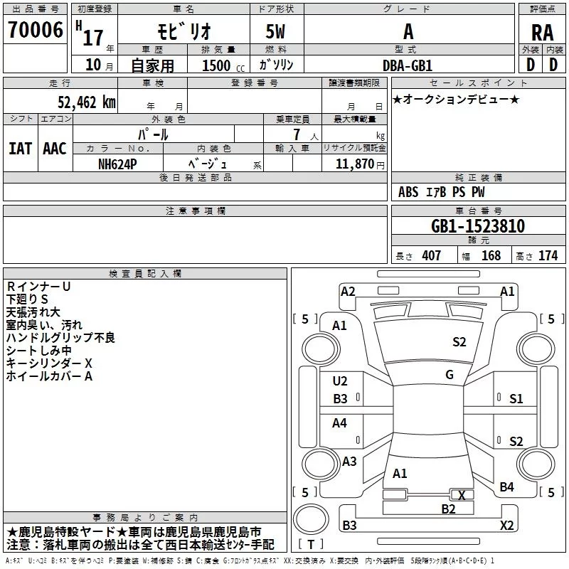 Honda MOBILIO с аукциона Японии TAA Minami Kyushu лот № 70006