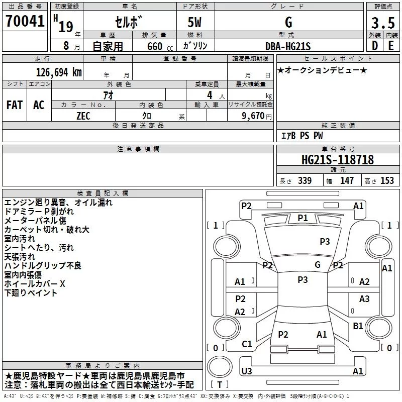 Suzuki CERVO с аукциона Японии TAA Minami Kyushu лот № 70041