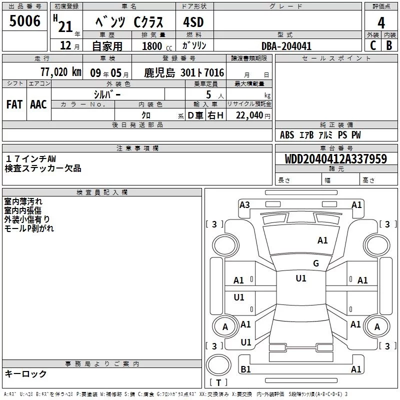 Mercedes-Benz C CLASS с аукциона Японии TAA Minami Kyushu лот № 5006