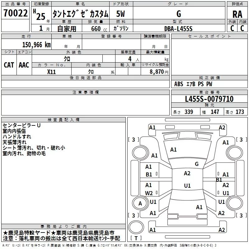 Daihatsu TANTO EXE с аукциона Японии TAA Minami Kyushu лот № 70022