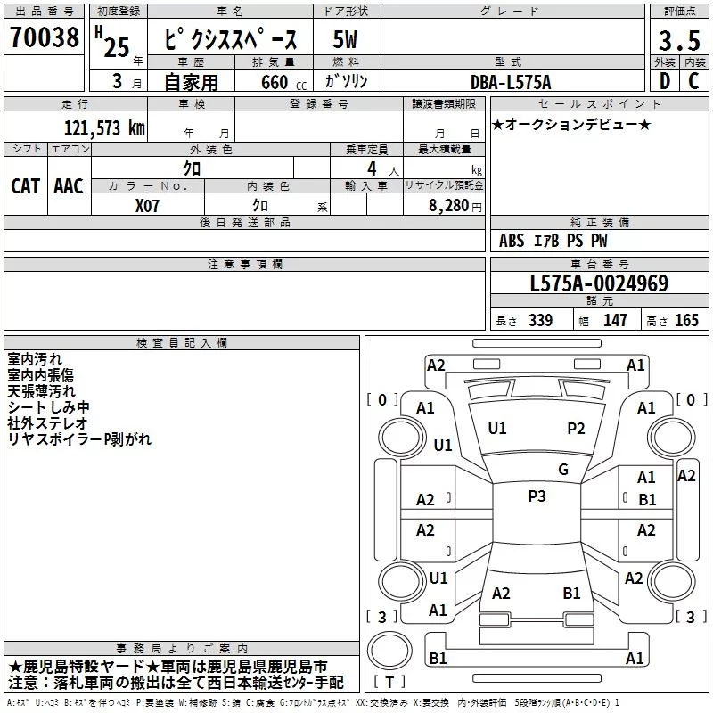 Toyota PIXIS SPACE с аукциона Японии TAA Minami Kyushu лот № 70038