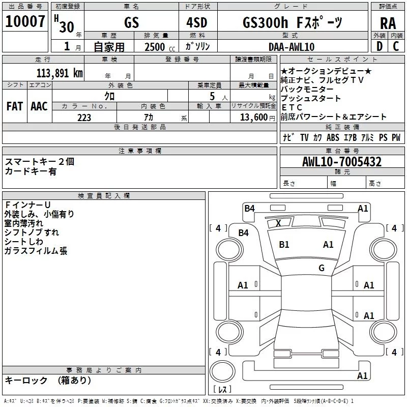 Lexus GS с аукциона Японии TAA Kyushu лот № 10007