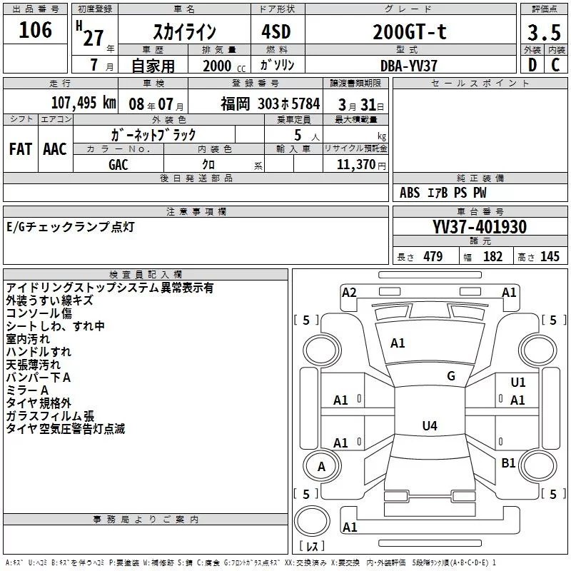 Nissan SKYLINE с аукциона Японии TAA Kyushu лот № 106