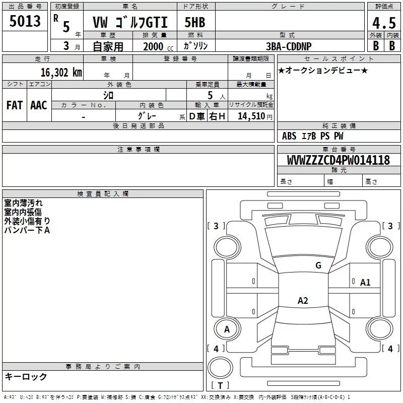 Volkswagen GOLF с аукциона Японии TAA Kyushu лот № 5013