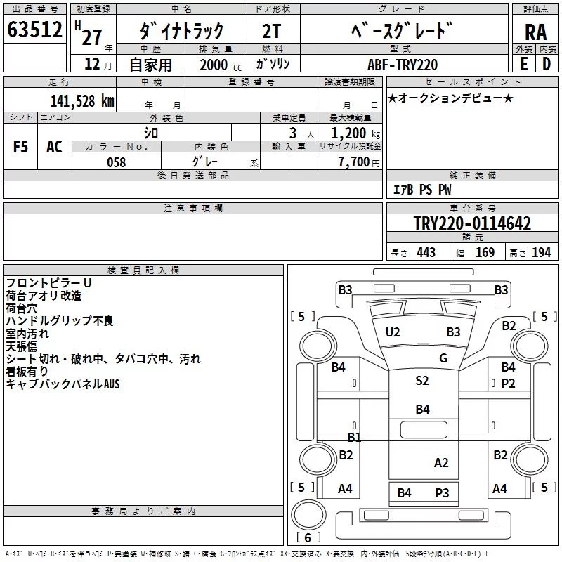 Toyota DYNA с аукциона Японии TAA Kyushu лот № 63512