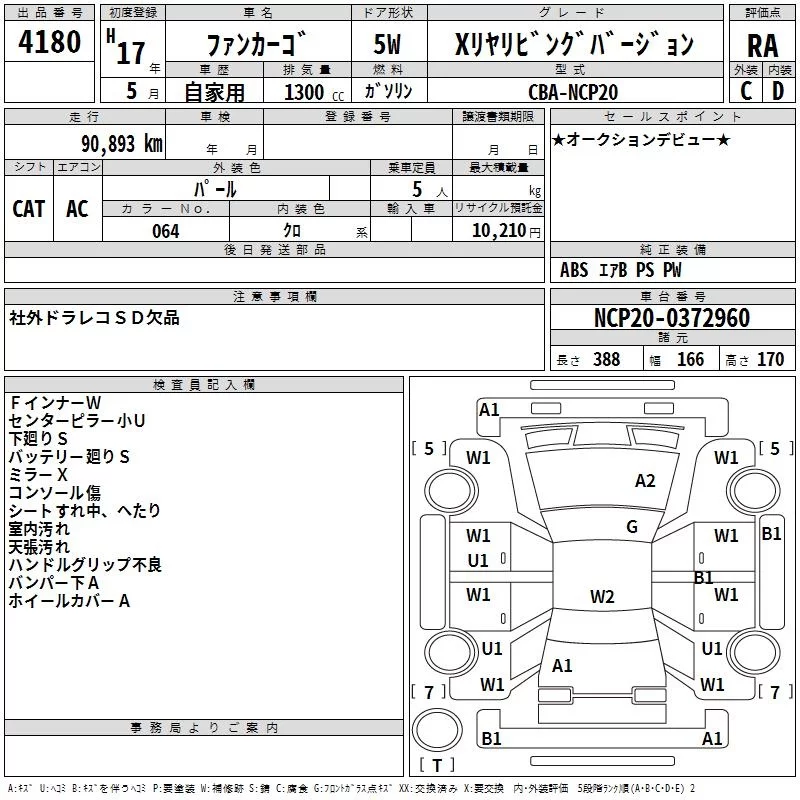 Toyota FUNCARGO с аукциона Японии TAA Kyushu лот № 4180