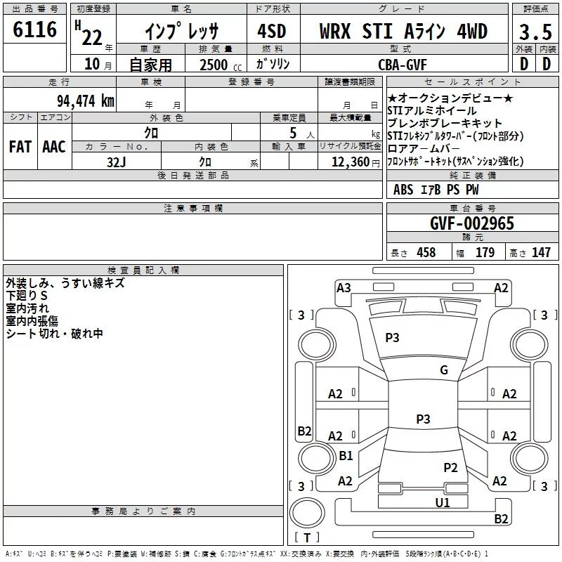 Subaru IMPREZA с аукциона Японии TAA Kyushu лот № 6116