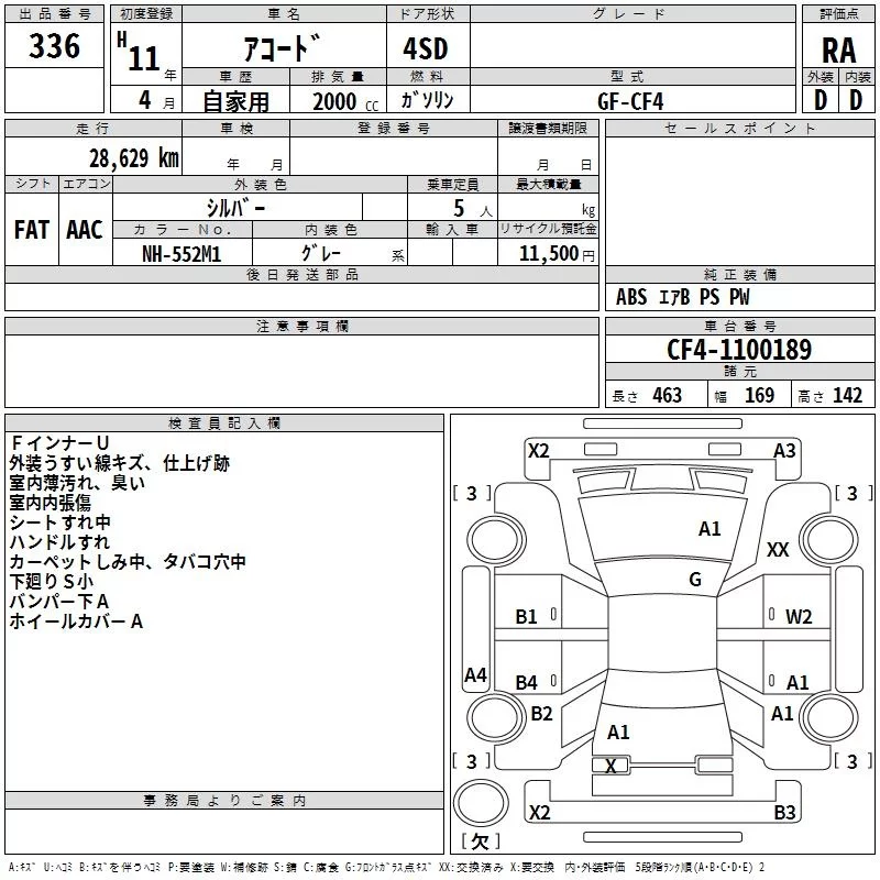 Honda ACCORD с аукциона Японии TAA Kyushu лот № 336