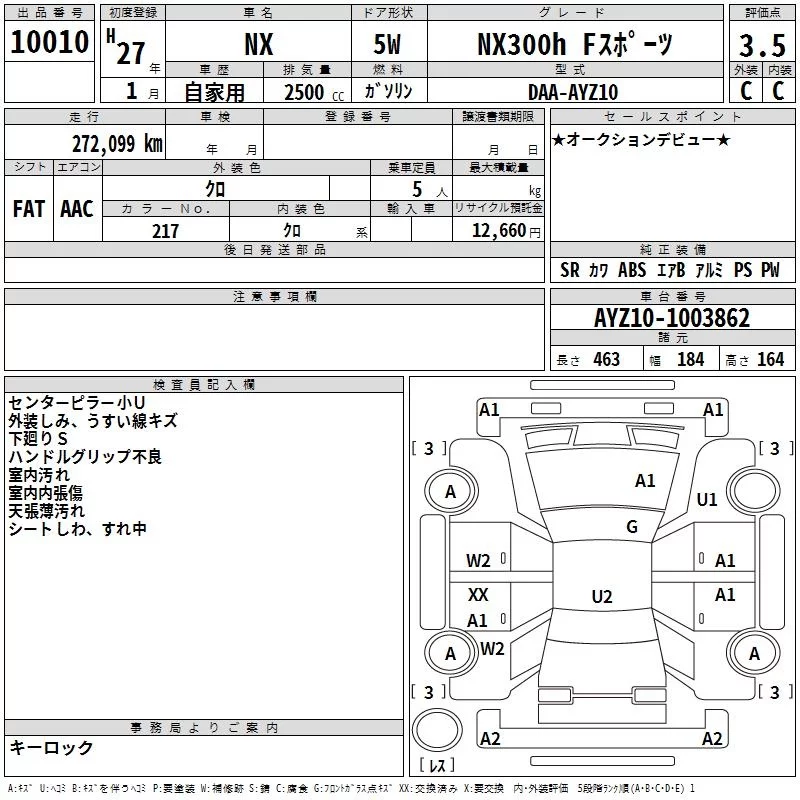 Lexus NX с аукциона Японии TAA Kyushu лот № 10010