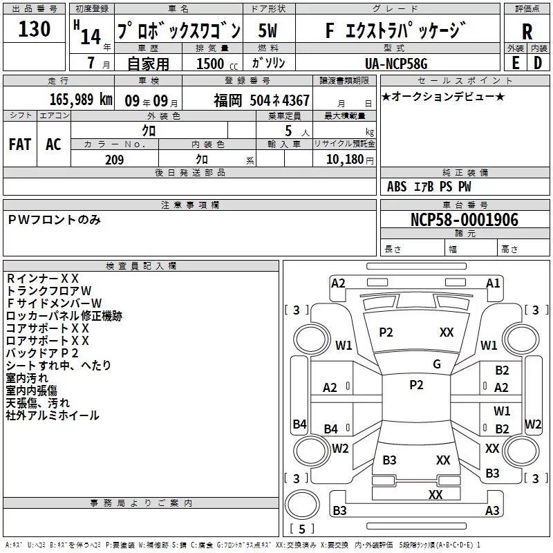 Toyota PROBOX с аукциона Японии TAA Kyushu лот № 130