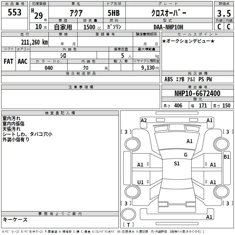 Toyota AQUA с аукциона Японии TAA Kyushu лот № 553