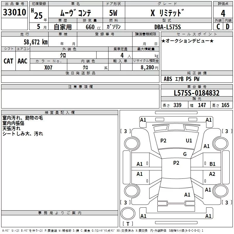Daihatsu MOVE CONTE с аукциона Японии TAA Kyushu лот № 33010