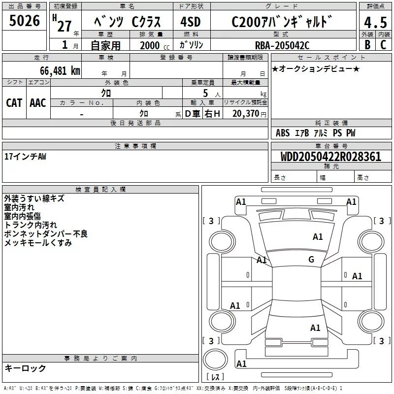 Mercedes-Benz C CLASS с аукциона Японии TAA Kyushu лот № 5026
