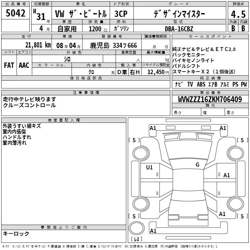Volkswagen THE BEETLE с аукциона Японии TAA Kyushu лот № 5042