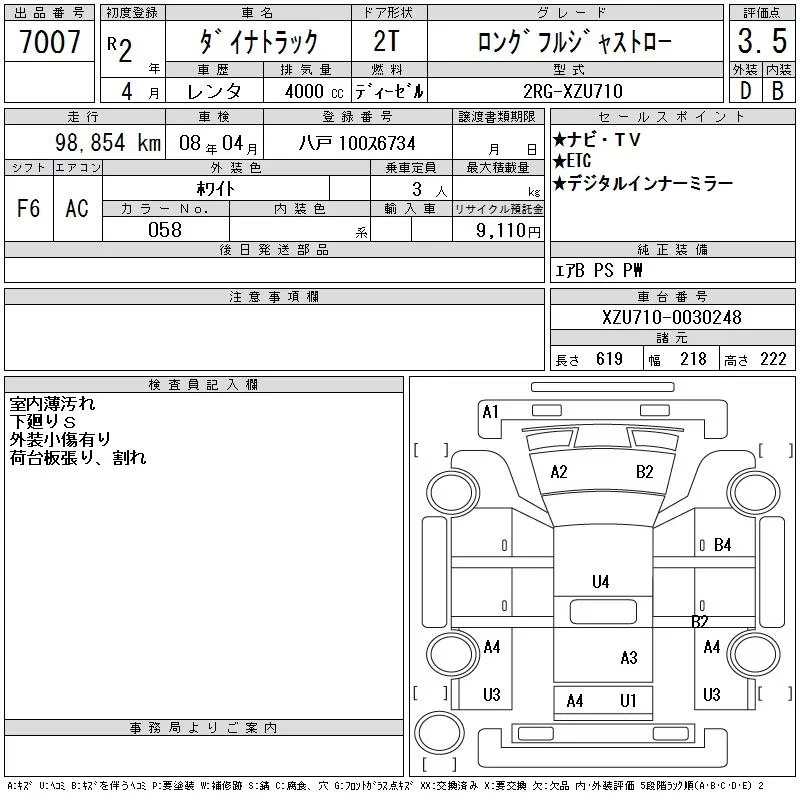 Toyota DYNA с аукциона Японии CAA Tohoku лот № 7007