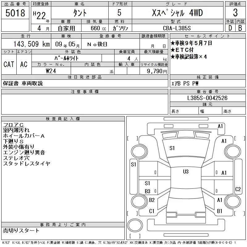 Daihatsu TANTO с аукциона Японии CAA Tohoku лот № 5018