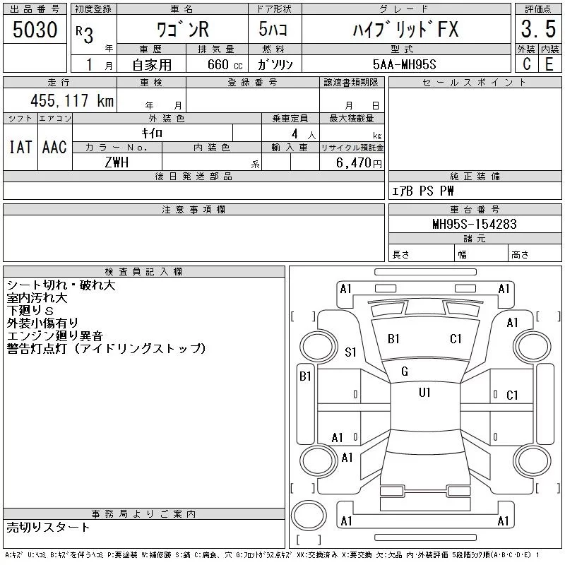 Suzuki WAGON R с аукциона Японии CAA Tohoku лот № 5030