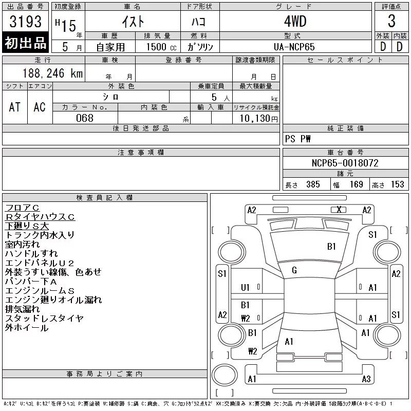 Toyota IST с аукциона Японии CAA Tohoku лот № 3193