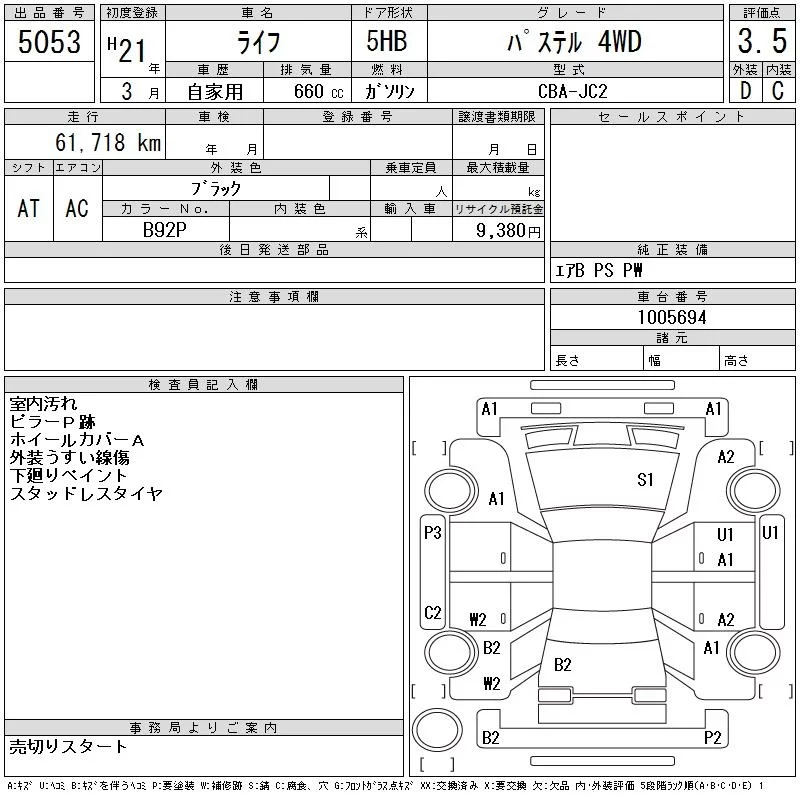 Honda LIFE с аукциона Японии CAA Tohoku лот № 5053