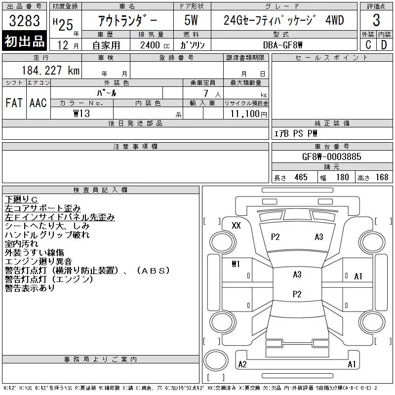 Mitsubishi OUTLANDER с аукциона Японии CAA Tohoku лот № 3283