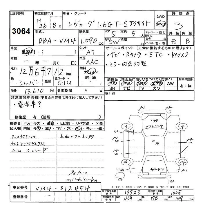 Subaru LEVORG с аукциона Японии JU Shizuoka лот № 3064