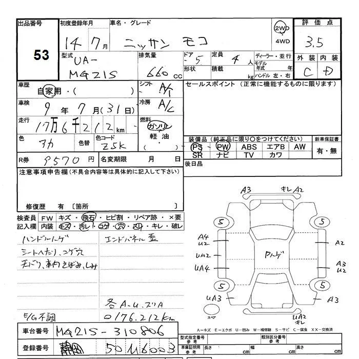 Nissan MOCO с аукциона Японии JU Shizuoka лот № 53